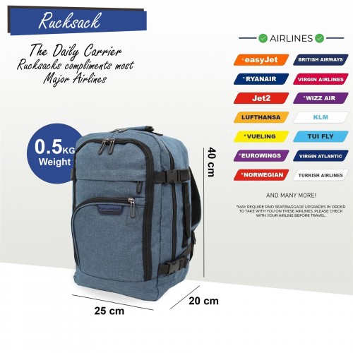 Rucksack Backpack 40×20 x25 cm Underseat Travel Cabin Bag for Easy Jet, Ryanair navy