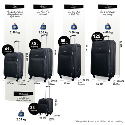 Nagoya Set of 5 Soft Shell Suitcase in Black
