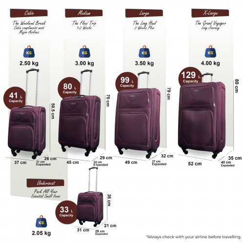 Nagoya Set of 5 Soft Shell Suitcase in Wine