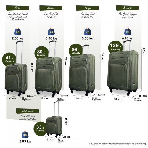 Nagoya Set of 5 Soft Shell Suitcase in Khaki