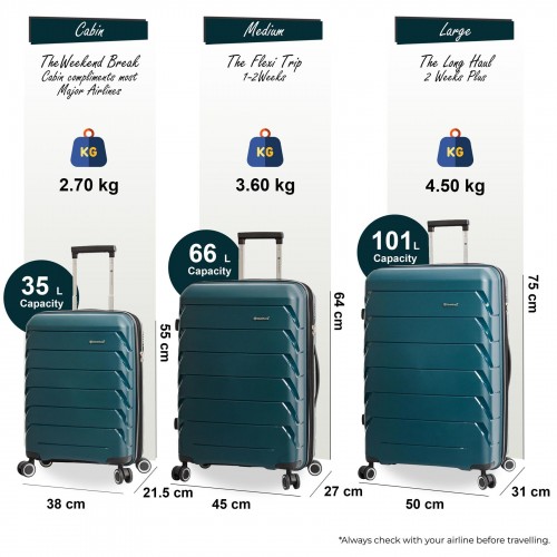 Cleckheaton Set of 3 Hard Shell Suitcase in Green