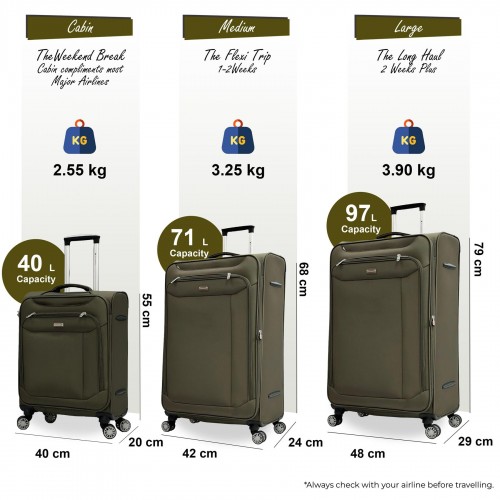 Cockermouth Set of 3 Soft Shell Suitcase in Khaki