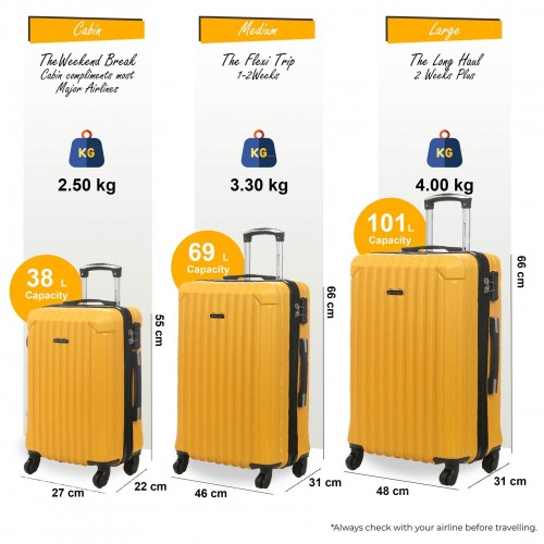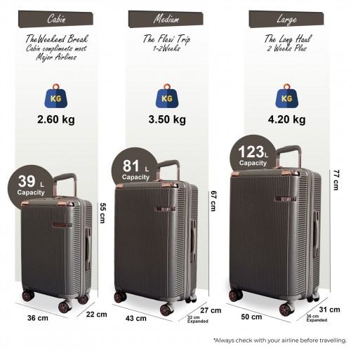 Cowra Set of 3 Hard Shell Suitcase in Champagne ( Beige ) Champangne