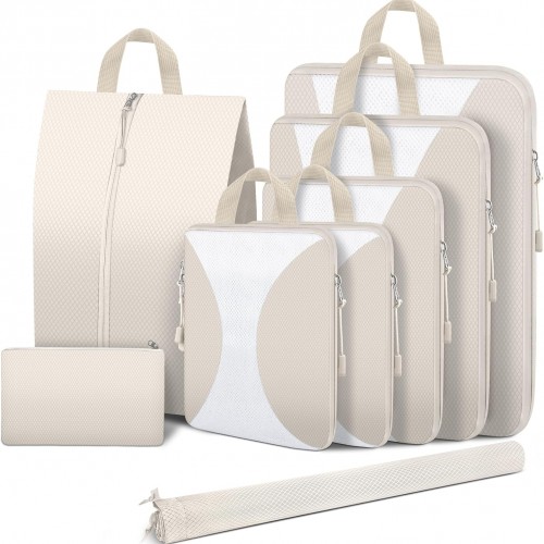 8 Set Compression Packing Cubes for Travel, Packing Cubes Compression Travel Accessories Expandable Packing Organizers for Carry on Luggage Suitcase (Gray)