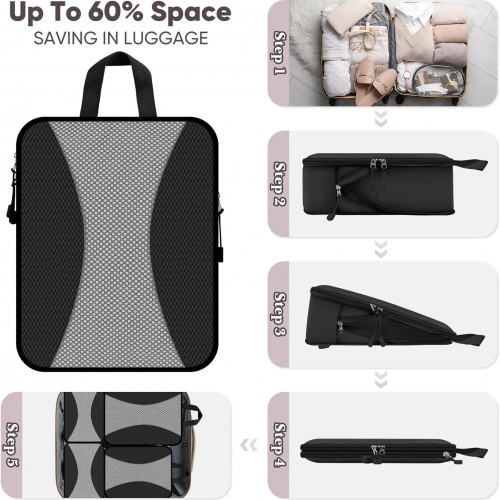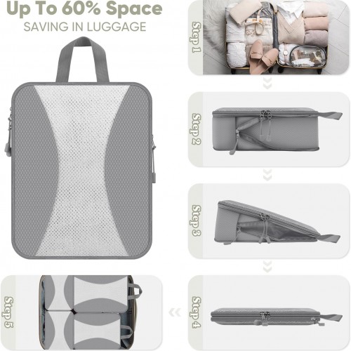 8 Set Compression Packing Cubes for Travel, Packing Cubes Compression Travel Accessories Expandable Packing Organizers for Carry on Luggage Suitcase (Gray)