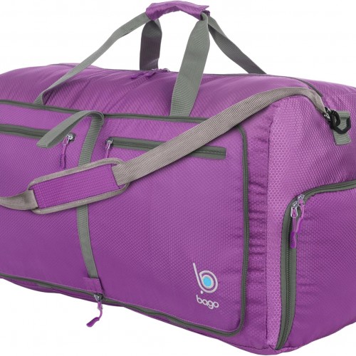 Bago Large Foldable Duffel Bags for Traveling Women & Men – 80L Packable Duffle Bag for Travel with Shoe Compartment – Water Repellant, Heavy Duty, Lightweight Folding & Collapsible (Purple)