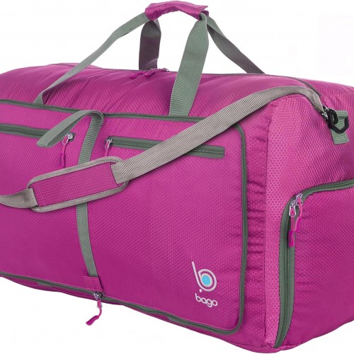 Bago Large Foldable Duffel Bags for Traveling Women & Men – 80L Packable Duffle Bag for Travel with Shoe Compartment – Water Repellant, Heavy Duty, Lightweight Folding & Collapsible (Pink)