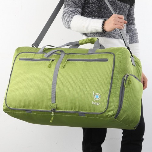 Bago Large Foldable Duffel Bags for Traveling Women & Men – 80L Packable Duffle Bag for Travel with Shoe Compartment – Water Repellant, Heavy Duty, Lightweight Folding & Collapsible (Green)