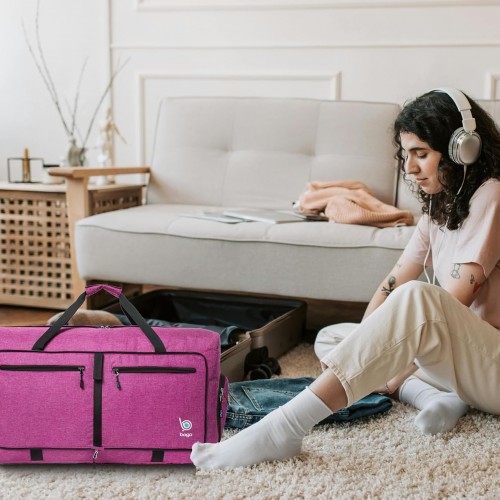 Bago Large Foldable Duffel Bags for Traveling Women & Men – 80L Packable Duffle Bag for Travel with Shoe Compartment – Water Repellant, Heavy Duty, Lightweight Folding & Collapsible (SnowPink)