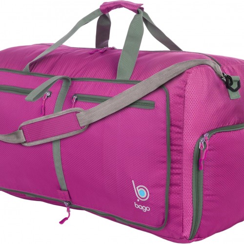 Bago Foldable Duffel Bags for Traveling Women & Men – 60L Medium Packable Duffle Bag for Travel with Shoe Compartment – Water Repellant, Heavy Duty, Lightweight Folding & Collapsible (Pink)