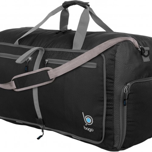 Bago Foldable Duffel Bags for Traveling Women & Men – 60L Medium Packable Duffle Bag for Travel with Shoe Compartment – Water Repellant, Heavy Duty, Lightweight Folding & Collapsible (Black)