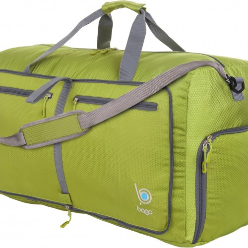 Bago Foldable Duffel Bags for Traveling Women & Men – 60L Medium Packable Duffle Bag for Travel with Shoe Compartment – Water Repellant, Heavy Duty, Lightweight Folding & Collapsible (Green)