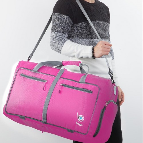 Bago Foldable Duffel Bags for Traveling Women & Men – 60L Medium Packable Duffle Bag for Travel with Shoe Compartment – Water Repellant, Heavy Duty, Lightweight Folding & Collapsible (Pink)