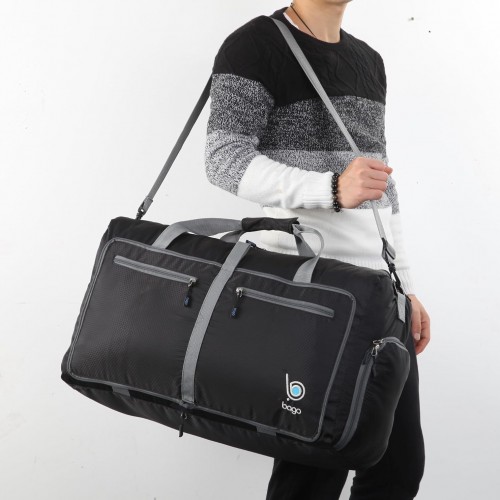 Bago Foldable Duffel Bags for Traveling Women & Men – 60L Medium Packable Duffle Bag for Travel with Shoe Compartment – Water Repellant, Heavy Duty, Lightweight Folding & Collapsible (Black)