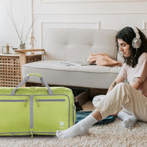 Bago Foldable Duffel Bags for Traveling Women & Men – 60L Medium Packable Duffle Bag for Travel with Shoe Compartment – Water Repellant, Heavy Duty, Lightweight Folding & Collapsible (Green)