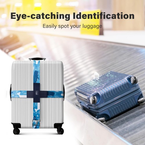 Luggage Straps for Suitcases,Adjustable Luggage Elastic Belt, Travel Essentials for Airport,Station, Vibrant Designs, (Azure Ocean)