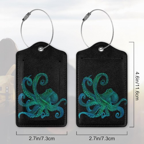 2 Pack PU Leahter Luggage Tag with Stainless Steel Loop,Green Octopus Luggage Tag Travel Suitcase Labels with Privacy Cover ID Label Quickly Spot for Bags & Baggage