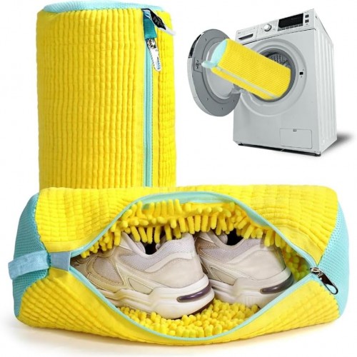 EPSCY Shoe Washing Machine Bag 2 Pack Yellow, 360° Wrap-Around Laundry Bags for Washer and Dryer – Reusable Deep Clean Sneaker Bags – Fits All Shoe Sizes & Types, Self-Locking Zipper, Protects Machine