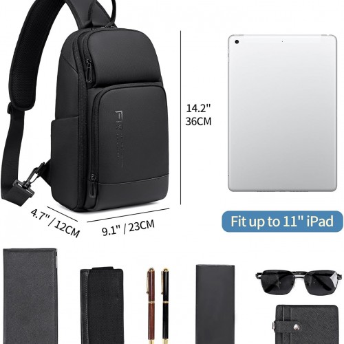 FENRUIEN Crossbody Sling Bag for Men, Water Resistant One Shoulder Backpack, Black Side Bag for Travel