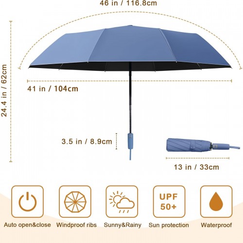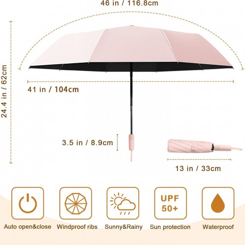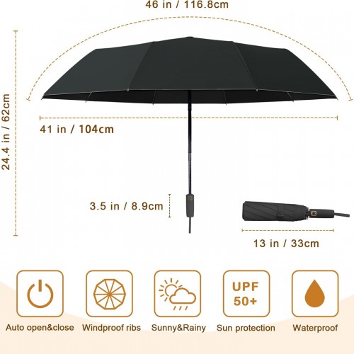 2-Pack Windproof, Waterproof, UV-Blocking Portable Travel Umbrella, Compact Sun & Rain Folding Umbrella, Double Rib Structure, Large Auto Open and Close Car Umbrella