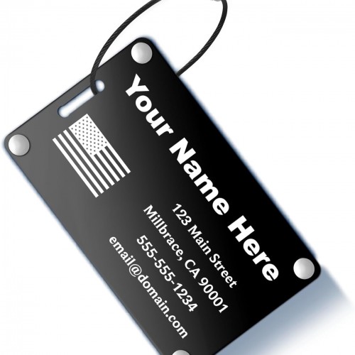 Personalized Luggage Tags: Custom Metal Luggage Tags for Suitcases, Backpacks and Bags with Your Personalized Text (Black)
