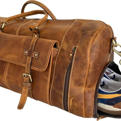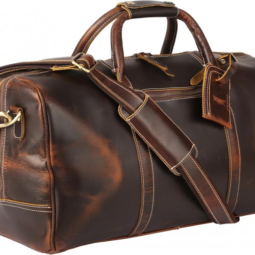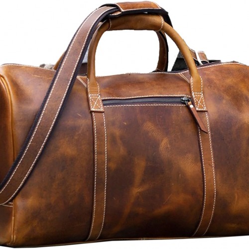 KomalC Leather Duffel Bags for Men and Women Full Grain Leather Travel Overnight Weekend Leather Bags Sports Gym Duffel for Men (Dark Tan, 20 Inch)