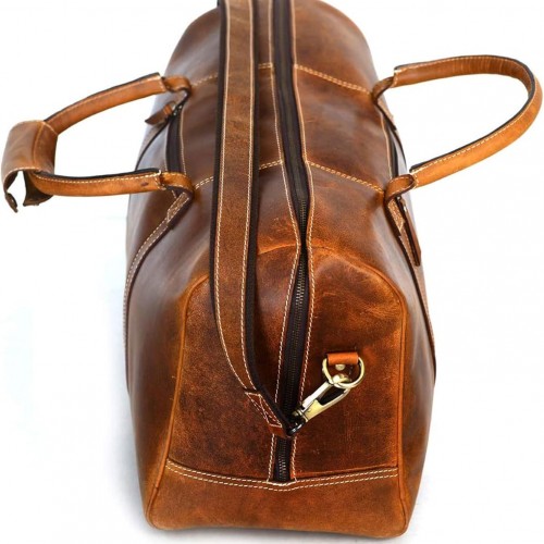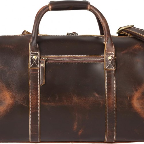 KomalC Leather Duffel Bags for Men and Women Full Grain Leather Travel Overnight Weekend Leather Bags Sports Gym Duffel for Men (Dark Tan, 20 Inch)
