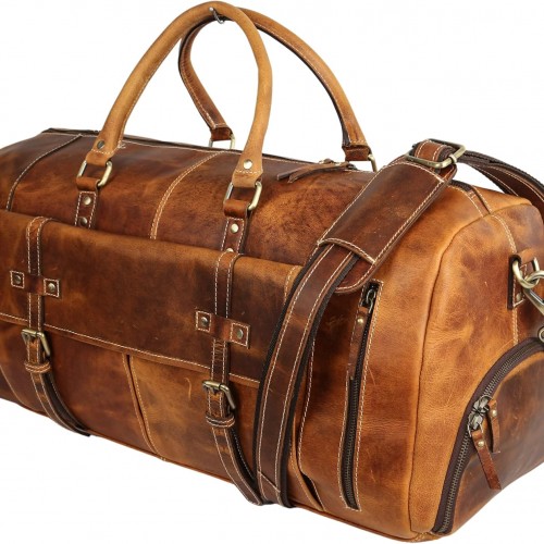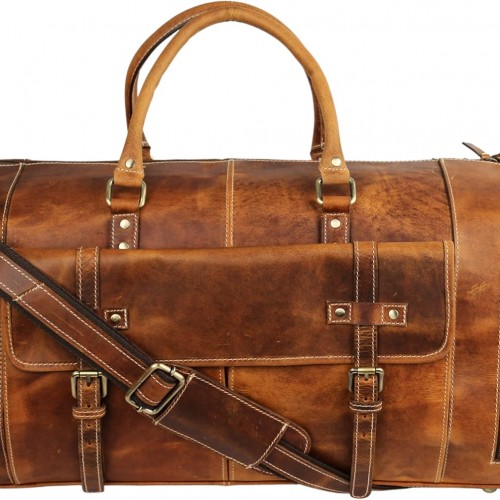 KomalC Leather Duffel Bags for Men and Women Full Grain Leather Travel Overnight Weekend Leather Bags Sports Gym Duffel for Men (Distressed Tan, 28 Inch)