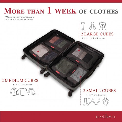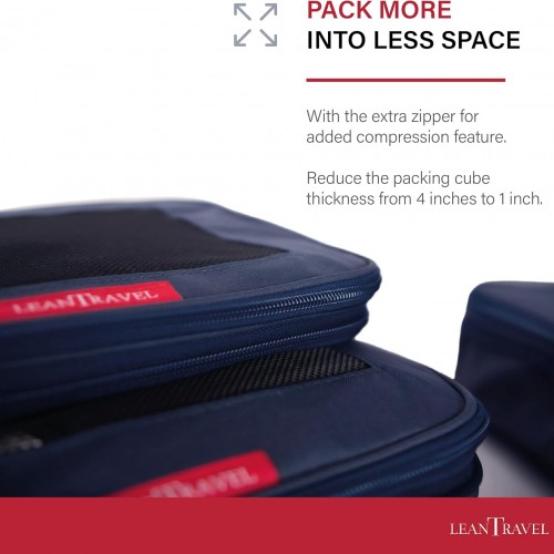 LeanTravel Compression Packing Cubes for Travel Organizers with Double Zipper (3-Pack (2L+1M), Navy)