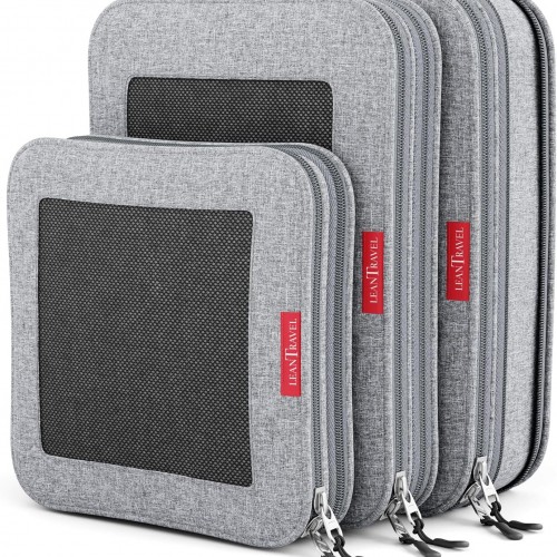 LeanTravel Compression Packing Cubes for Travel Organizers with Double Zipper (3-Pack (2L+1M), Grey)