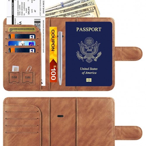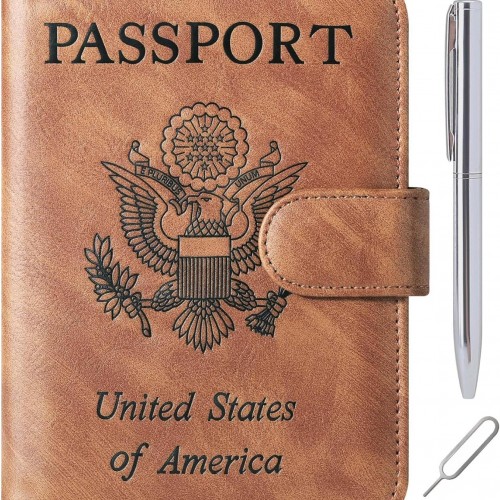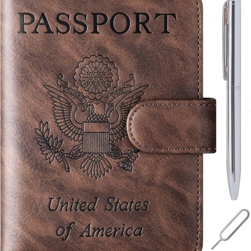 Passport Holder Cover Wallet Travel Essentials Leather Rfid Blocking Case Vacation Luggage Must Haves Travel Accessories for Men Women (120#Brown)