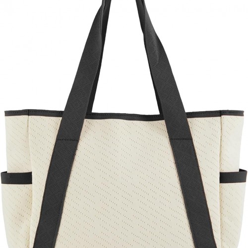 Large Canvas Tote Bag,White and Green, with Laptop Sleeve and Multiple Pockets