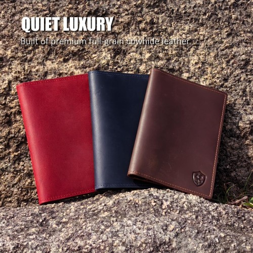 STAR VISTA Albatross Leather Travel Passport Holder, Minimalist Design, Full Grain Leather Case for Women and Men – Slim Passport Wallet, Bifold, RFID Blocking, Crimson Red