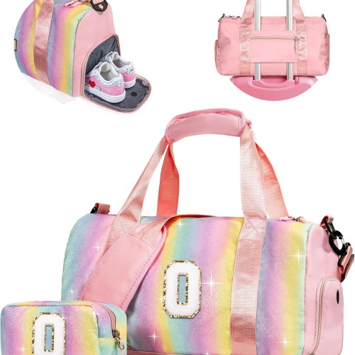 Graduation Gifts for Girls-Girl Gym Bag with Shoe Compartment, Kid Personalized Weekender Overnight Bags, Initial Travel Tote with Makeup Pouch, Gift Ideas for Niece Sister (Letter O)