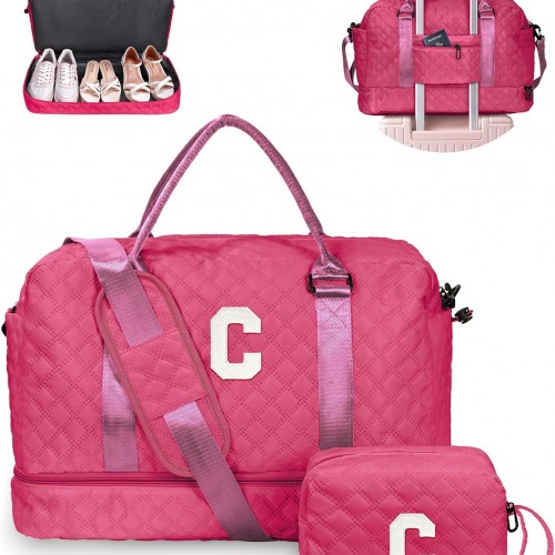 Monogrammed Gifts for Woman, Stuff for Teen Girls-Initial Travel Bag with Shoe Compartment, Weekender Bag, Monogram Overnight Bag for Women, Letter Travel Bag with Makeup Bag (Letter C)