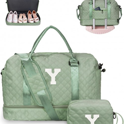 Monogrammed Gifts for Women-Initial Travel Bag with Shoe Compartment, Personalized Weekender Bag, Monogram Overnight Bag for Women, Girl Duffel Bag with Makeup Bag (Letter Y)