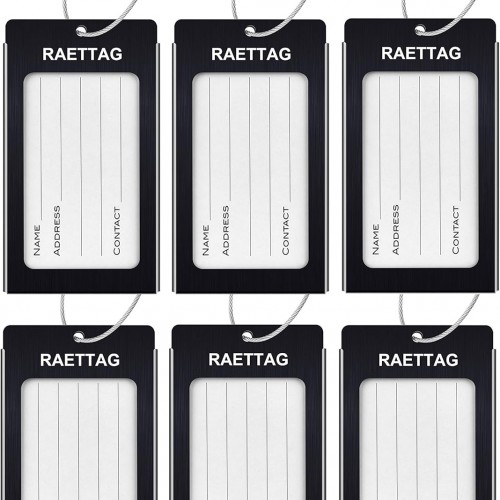 Luggage Tags Metal Suitcase Tags Travel Bag ID Identifier Luggage Tag (Black 6-Pack)