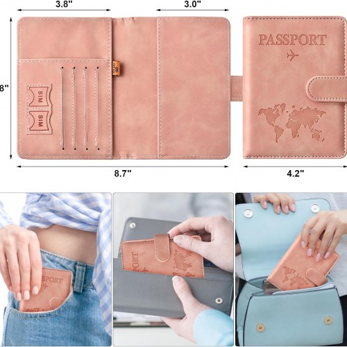 Eoehro Passport Holder for Travel Essentials, Passport Wallet Cover Case for Travel Must Haves Accessories,Passport Book Holders for Women and Men(light pink)