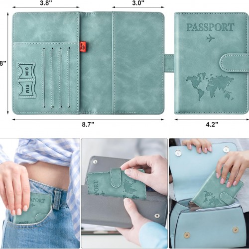Eoehro Passport Holder for Travel Essentials, Passport Wallet Cover Case for Travel Must Haves Accessories,Passport Book Holders for Women and Men(light blue)