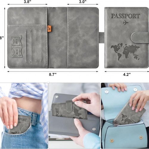 Eoehro Passport Holder for Travel Essentials, Passport Wallet Cover Case for Travel Must Haves Accessories,Passport Book Holders for Women and Men(gray)