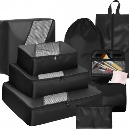 WVM Packing Cubes for Travel, 8 Set Luggage Organizer Bags with Shoe Bag, Toiletry Bag & Laundry Bag, Travel Accessories Essentials Packing Organizer, Black