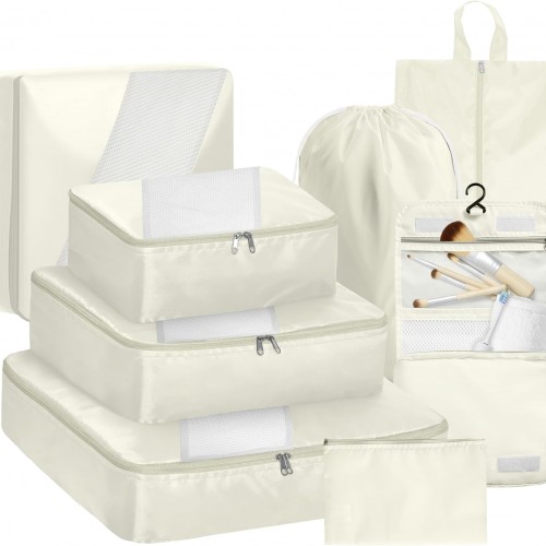 WVM Packing Cubes for Travel, 8 Set Luggage Organizer Bags with Shoe Bag, Toiletry Bag & Laundry Bag, Travel Accessories Essentials Packing Organizer, Beige