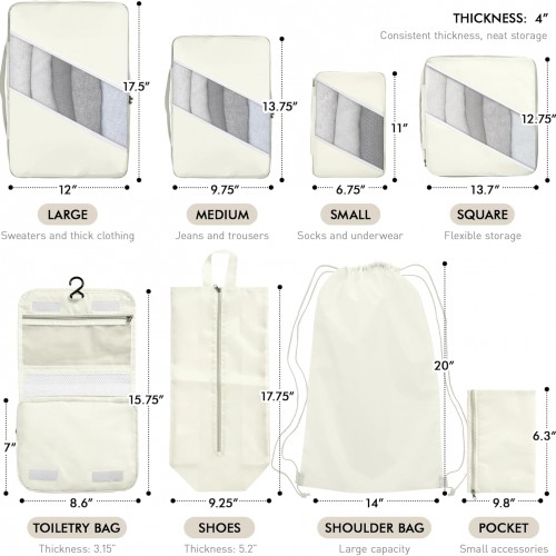 WVM Packing Cubes for Travel, 8 Set Luggage Organizer Bags with Shoe Bag, Toiletry Bag & Laundry Bag, Travel Accessories Essentials Packing Organizer, Beige