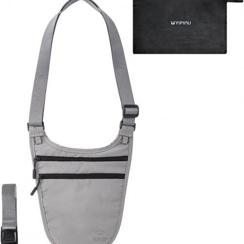 Crossbody Money Belt for Travel Women & Men Hidden, Travel Wallet Pouch – Slim Passport Holde, RFID Blocking Neck Wallet Under Clothes to Protect Cash, Credit Cards and Documents (GRAY)