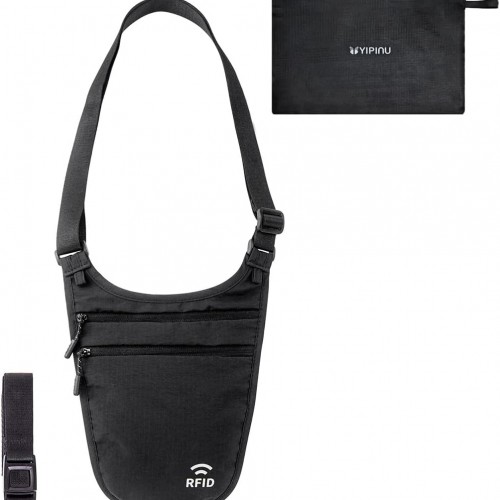 Crossbody Money Belt for Travel Women & Men Hidden, Travel Wallet Pouch – Slim Passport Holde, RFID Blocking Neck Wallet Under Clothes to Protect Cash, Credit Cards and Documents (BLACK)
