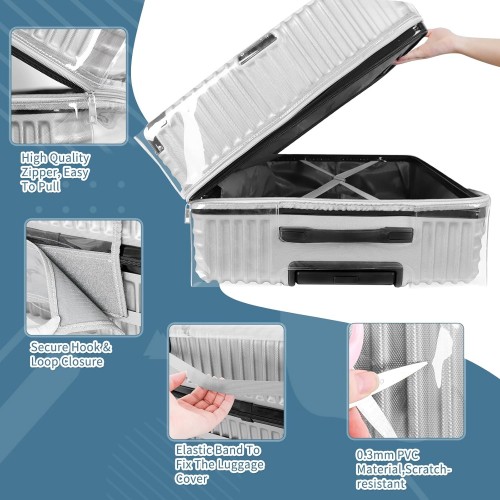 Yotako Upgraded Zippered Clear PVC Suitcase Cover, 30 Inch Luggage Covers for Wheeled Suitcase 30″