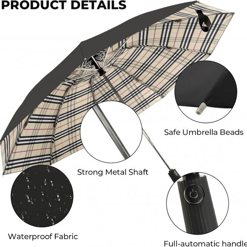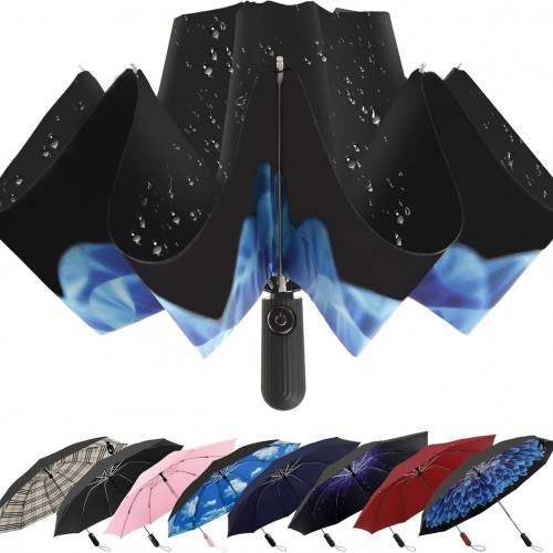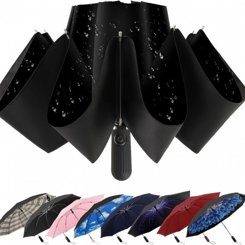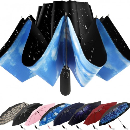 Compact Inverted Travel Umbrella, Automatic Open Close, 9-Rib 46 Inch Windproof Umbrella, Waterproof UPF 50+, Portable Umbrellas for Men, Women, Travel, and Daily Use