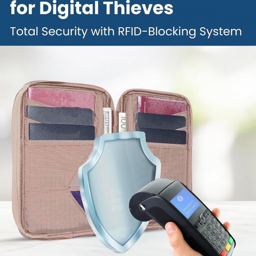 Passport Holder & Travel Wallet with RFID Blocking – Premium Document Organizer Case for Men and Women – Holds Passports, Cards, Tickets, ID, Cash – Compact Zippered Wallet – Rose
