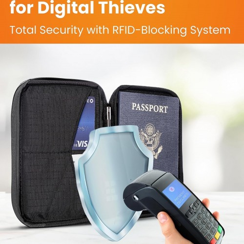 Passport Holder & Travel Wallet with RFID Blocking – Premium Document Organizer Case for Men and Women – Holds Passports, Cards, Tickets, ID, Cash – Compact Zippered Wallet – Midnight