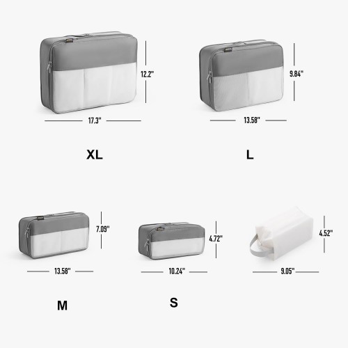 5 Set Compression Packing Cubes for Travel, Space Saving Luggage Organizer Bags (Silver)